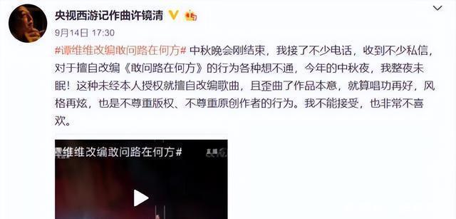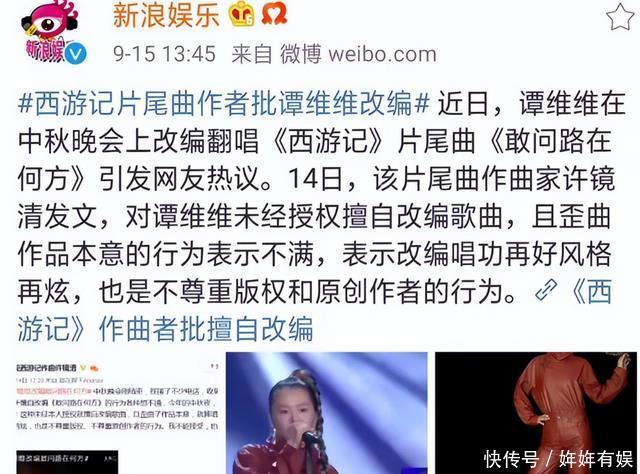 不得不说,她是懂创新的,但是她的创新也给自己带来了不小的麻烦,在19年的中秋晚会上,她把《敢问路在何方》进行了创新, 她把这首歌与摇滚相结合,改变了这首歌的风格,然而她的创新让原作者感到了不满,原作者认为她这是没有经过允许就改变了歌曲的本意, 她面对批评只选择道歉,然而观众并不买账,人们也知道她这个人是什么性格,说她的道歉是没有诚意的。